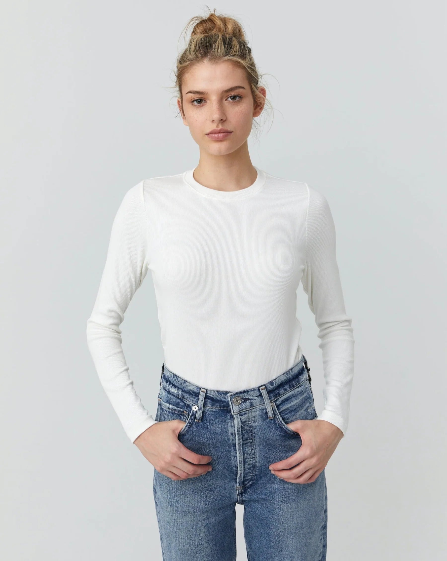 Inspired by the Windy City; this super soft, stretchy ribbed long sleeve can be enjoyed as a stand alone favorite, or layered beneath a sweatshirt or jacket for those cooler days.