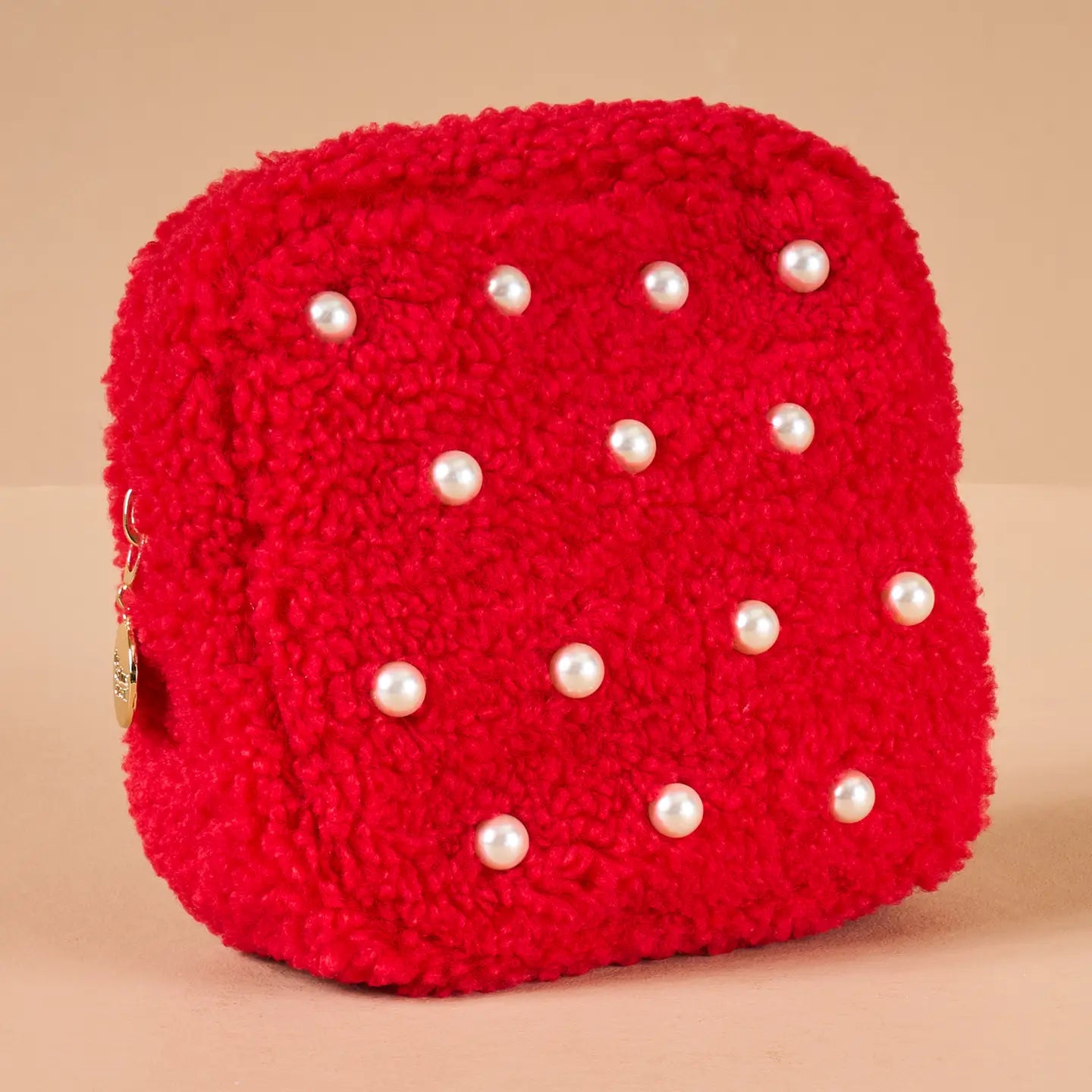 Teddy Pouch Square Red Pearl