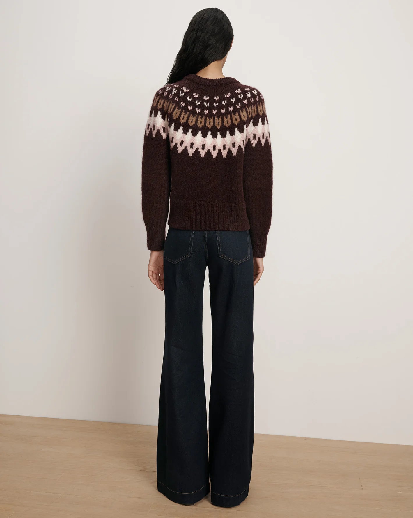 No wardrobe is complete without a great Fair Isle knit. Spun from a luxuriously soft baby alpaca and merino wool blend, the maroon Anne sweater features a relaxed fit and slightly boxy shape that hits at the high hip. A classic crew neckline and chunky ribbing at the cuffs, neck, and hem complete the look. Pair with jeans for ease and a maxi skirt for polish.