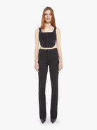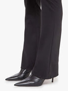 A classic high-rise flared trouser with a zip fly and a 34-inch inseam with a clean hem. Made from stretch fabric, the pants are designed in black with tonal hardware.