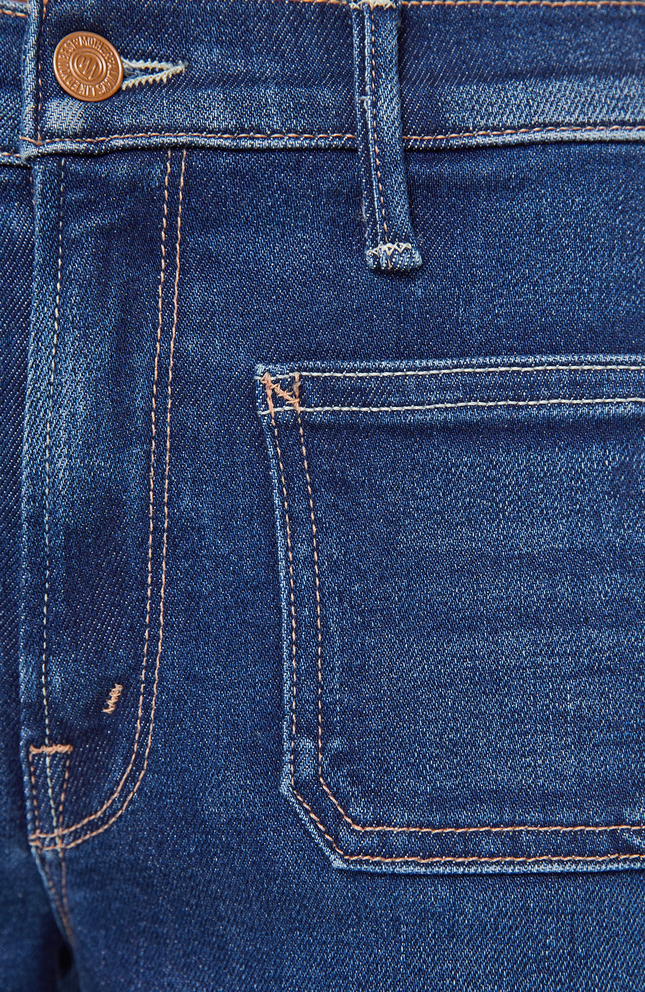 Mid-rise jeans with a loose fit, zip fly, wide leg, patch pockets and ankle-length inseam with a clean hem. Cut from stretch denim,