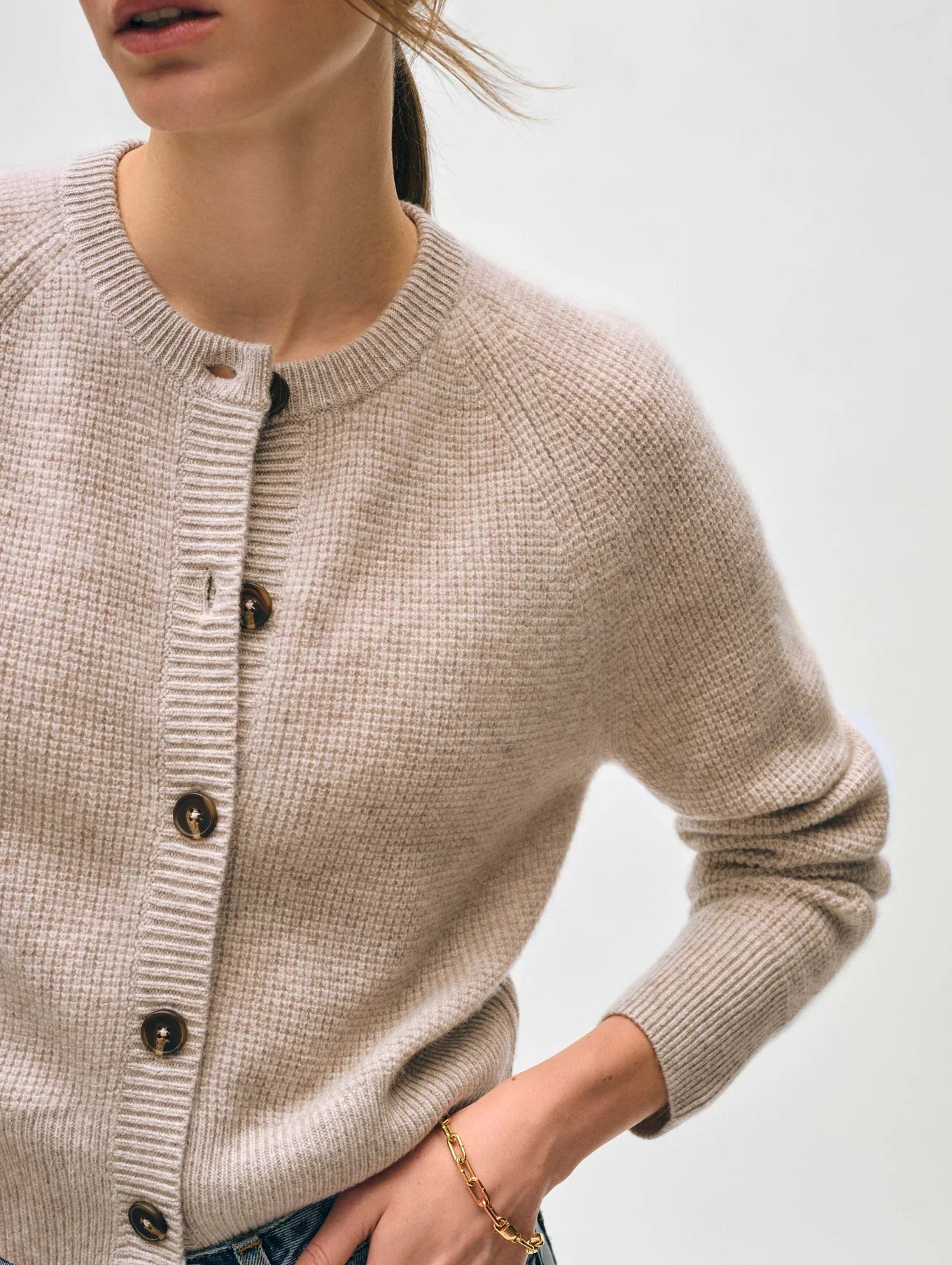 We brought back our popular cashmere waffle texture in the form of this covetable cardigan. A straight fit and finely ribbed trims add subtle definition. Slip it on over a tee or wear it on its own on days out.