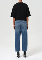 Our best-selling 90’s Jean, now with a cropped inseam. This mid-rise fit sits relaxed at the waist and flows into a loose straight leg. Crafted from rigid, non-stretch 100% regenerative cotton denim, it softens with each wear. The medium vintage indigo wash features subtle fading and whiskering for a timeless look. Pair with a tailored blazer and pointed-toe boots for a polished yet laid-back vibe, or style with a tucked-in tee and sneakers for an effortlessly cool weekend look.