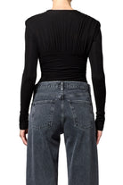 The Abbi Bodysuit offers a sophisticated silhouette with its carefully designed ruching that enhances your natural curves. Crafted for a flattering fit, this holiday essential seamlessly blends elegance and comfort, making it perfect for festive occasions or stylish evening wear. Elevate your wardrobe with a piece that complements your figure while providing timeless appeal.