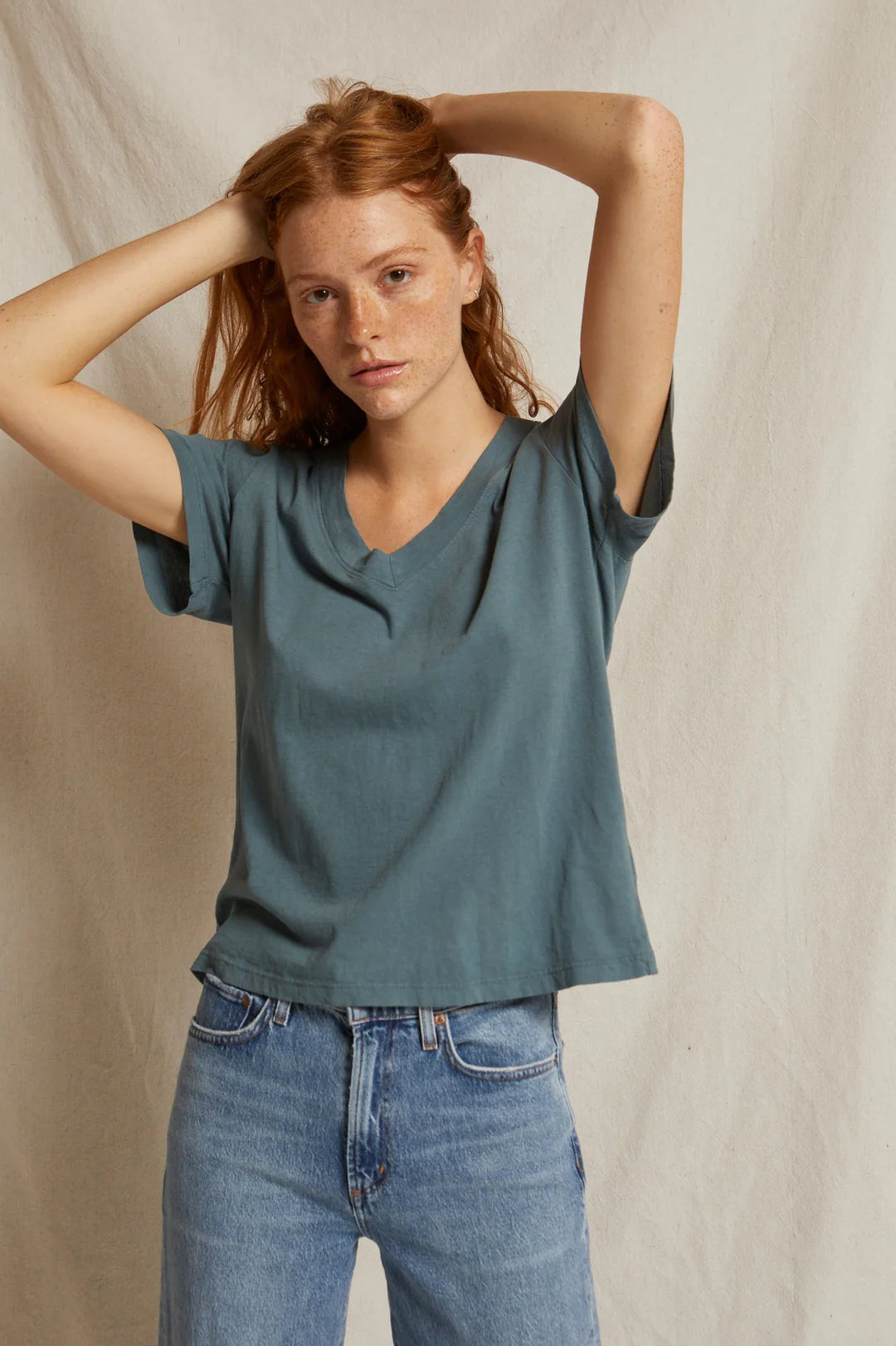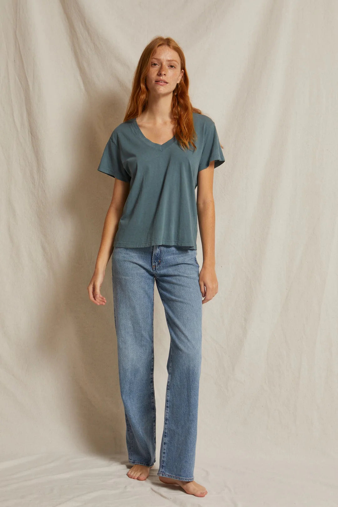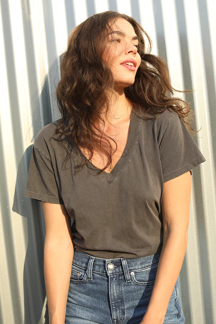 the perfect, slightly-oversized v-neck tee. it’s sexy, but not too sexy. the essential staple piece you will want to live in. hits just below mid-rise denim. we curated the perfect hues for any wardrobe. get a few, they will be forever your favorite.