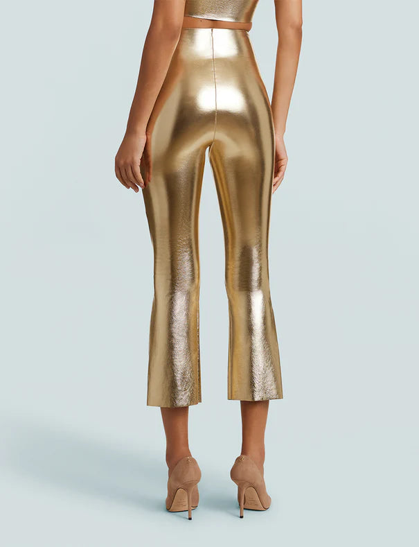 Commando's Faux Leather Cropped Flare Leggings feature our signature internal smoothing waistband made from a firming fabric that doesn't bag or sag. The faux leather is soft but flexible with incredible four-way stretch and recovery. Even better, these high-rise, cropped flare leggings are machine washable.