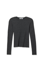 a classic long sleeve silhouette cut; the jolie features a crew neckline and full length sleeves in a soft loose knit sweater rib.