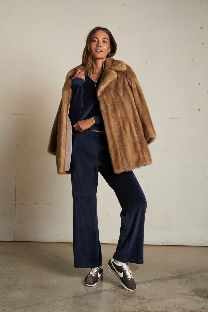 why we love it: we love the kiva because it takes a fan-favorite shape and makes it feel fresh for the season. the velour fabrication adds a touch of polish, while the dropped shoulder and zip neckline bring a relaxed yet refined vibe. pair it with the alex pant for a full set, or wear it with denim for an elevated casual look.