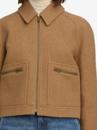 A cozy zip jacket with raglan sleeves and a boucle-like texture. Crafted in 100% virgin wool, in a warm camel hue that goes with everything. Fully lined, with two playfully oversized front zip pockets.